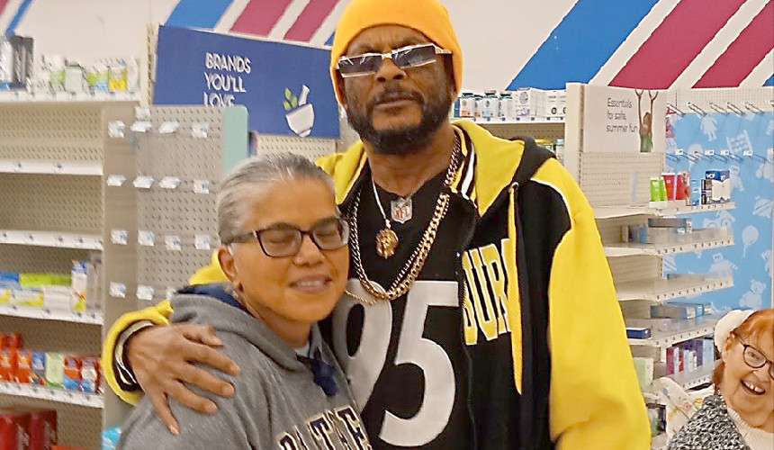 Photo 1: Staff of the Second Avenue Rite Aid on Dec. 4, from left: Pete Turrill (certified pharmacy technician), Marquis Carter (pharmacy technician), Janelle Coleman (assistant manager), Erin Rossiter (pharmacist), Dave Harms (store manager), Deb Cerase (assistant manager), Bip Karki (pharmacy manager). Photo 2: Tracy Reynolds waited for a ride inside the Second Avenue Rite Aid on Nov. 30. Photo 3: Inshira Shahid (left) and Johnny Spell (right) chatted outside the Rite Aid on Nov. 30. Photo 4: Assistant manager Deb Cerase (left) said goodbye on Dec. 3 to Hazelwood resident and community advocate Robert McCune. Photo 5: Susan McGregor ran a final errand at the Second Avenue Rite Aid on Nov. 30.